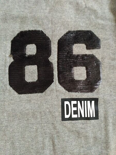 Лёгкий серенький свитшот Name it, по бирке размер 9-10 лет (134-140 см). Лучше сверять замеры.Пайетки-перевертыши, сзади просто серый.