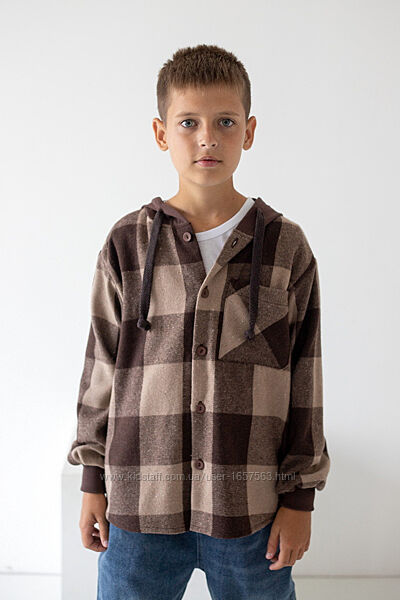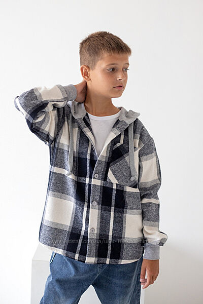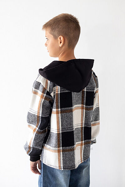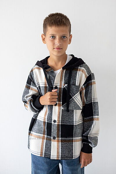 Ультрамодний хіт цього сезону - сорочка з теплої картатої байки супер якості для підлітків. Модель вільного крою з довгими рукавами, стильним контрастним капюшоном зі шнурками, застібкою на гудзики і манжетами з еластичного матеріалу по низу рукавів. Доповнити образ рекомендується футболкою або топом, стильними джинсами, об´ємними кросівками або черевиками на шнурівці. Тканина преміум якості, дуже щільна і тепла.