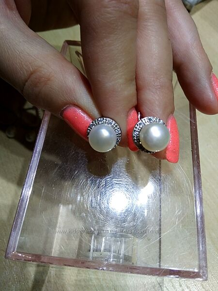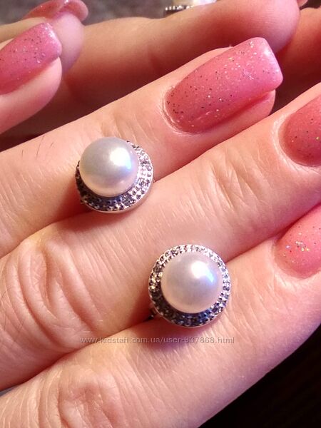 В наличииСерьги с природным натуральным культивированным белым жемчугом .