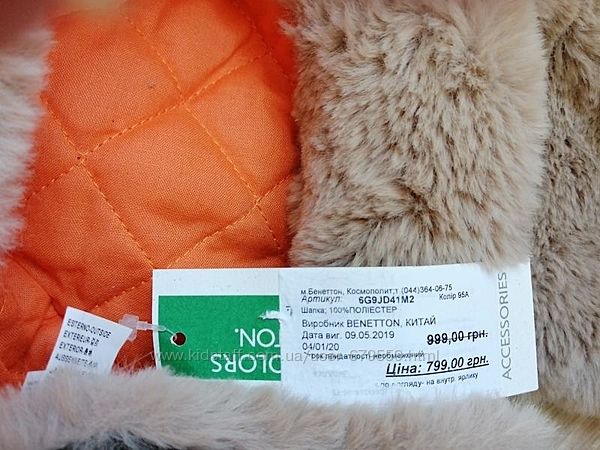 Подробное описание: Шапка ушанка benetton 54 - 56 зима нежный мех