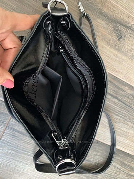Подробное описание: Шкіряна лакова чорна крос-боді