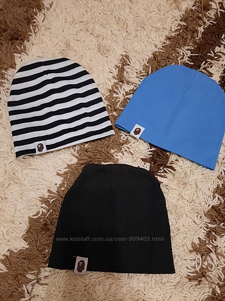 3 шапочки трикотажные (черная! голубая и полосатая - ПРОДАНЫ).