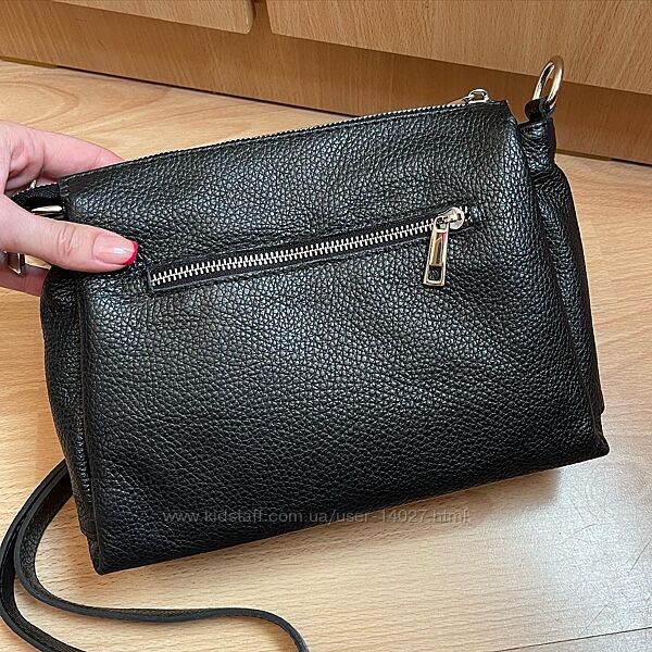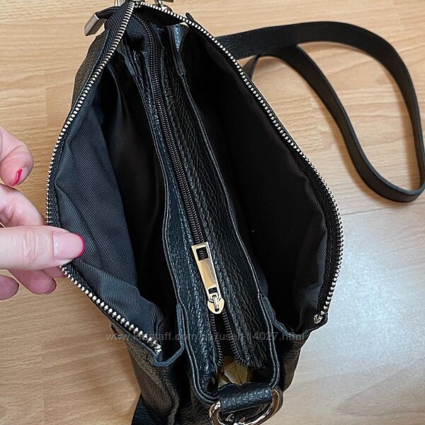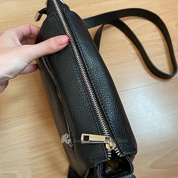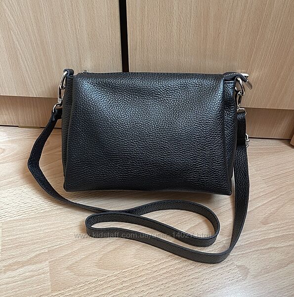 Классная кожаная Сумочка кроссбоди Vera Pelle на 3 отделения. Made in Italy
