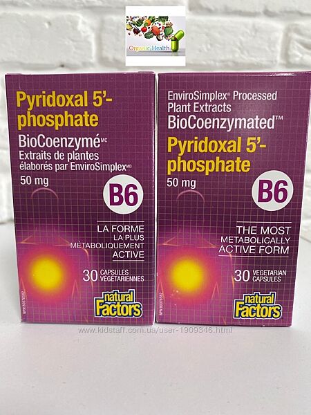 Natural Factors, BioCoenzymated, B6, пиридоксал-5-фосфат, 50 мг, 30 вегетарианских капсулОписание