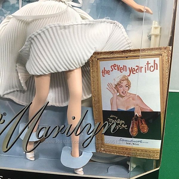 Продам коллекционную Барби Мэрилин МонроКукла Барби в Образе Мэрилин в Белом Платье в Фильме Зуд Седьмого Года – коллекционная кукла Барби, портрет американской киноактрисы, покорившей сердца миллионов, эталона женственности и красоты на все времена - Мэрилин Монро. Кукла Барби носит белое гофрированное платье с видом ворота «американская пройма», именно такой наряд создал для легенды Голливуда Мэрилин американский художник по костюмам Уильям Травилла. В этом платье актриса сыграла свою знаменитую роль в фильме «Зуд седьмого года». Мэрилин была запечатлена во всеми любимой сцене, когда поток воздуха из вентиляционной шахты метро поднимает её юбку. Задорный, искренний, живой и невероятно притягательный образ Мэрилин будет радовать Вас снова и снова благодаря кукле Барби в Образе Мэрилин в Белом Платье в Фильме Зуд Седьмого Года!