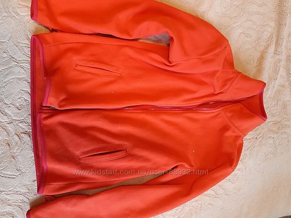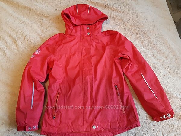 Куртка-ветровка 3 в 1 немецкой фирмы. По факту Вы покупаете 3 вещи: флисовую кофту, ветровку и курточку в которой можно ходить до +8Из нюансов- сзади сбоку манюсенький порезик, см фото, очень маленький, сама ели увидела. В остальном куртка в отличном состоянии.