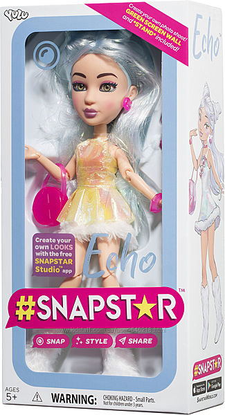 Echo (Эхо) — просто ослепительная красотка. Она большая мечтательница и смотрит на жизнь в позитивном ключе, в любой ситуации она чувствует себя комфортно. Внешне она напоминает блестящую русалку. Echo — профи в области макияжа. В этом вопросе девчонки любят с ней советоваться. Скачай приложение Snapstar Studio. С его помощью ты можешь снимать милую Echo на фоне зеленого экрана хромакея, который входит в комплект, добавлять различные фоны к ее фото, делать ей разные причёски и самый уникальный макияж. А главное всеми новыми образами ты сможешь делиться с друзьями в социальных сетях прямо из приложения. У Echo также есть своя страничка в Инстаграме и свой канал в Youtube. Для кукол можно создавать истории, добавляя достойные социальных сетей фоны, или поместить кукол в реальный мир. Например, в гондолу на каналах Венеции, поставить их позировать перед стеной граффити, или даже на обложке журнала. Есть и фантастические локации, даже лес единорогов!