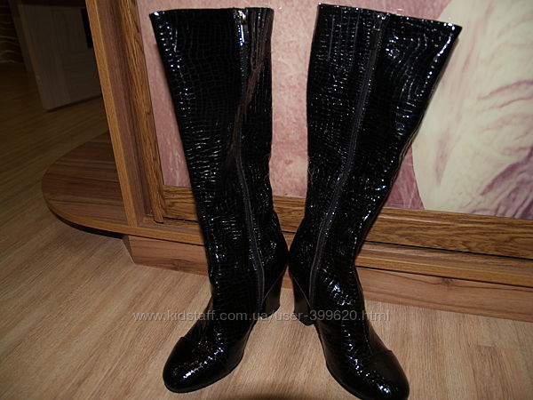 Сапоги на узкую ножку, лакированная кожа, р.36, стелька 23 см.отличное состояние, все целое.внутри плюшевая подкладка по всему сапожку