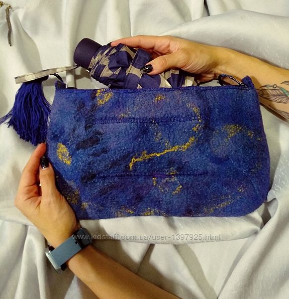 Клатч у вінтажному стилі " Зоряна ніч". 31х17 см, суцільноваляний з мериносової шерсті. Зручний тримач для руки, всередині є кишеня. Застібається на молнію.Другие объявления продавца