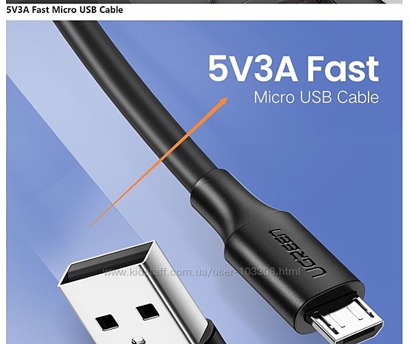 Подробное описание: Новый кабель Ugreen micro usb, для быстрой зарядки QC 3.0 и передачи данных