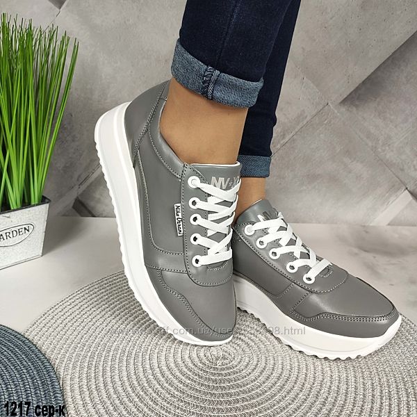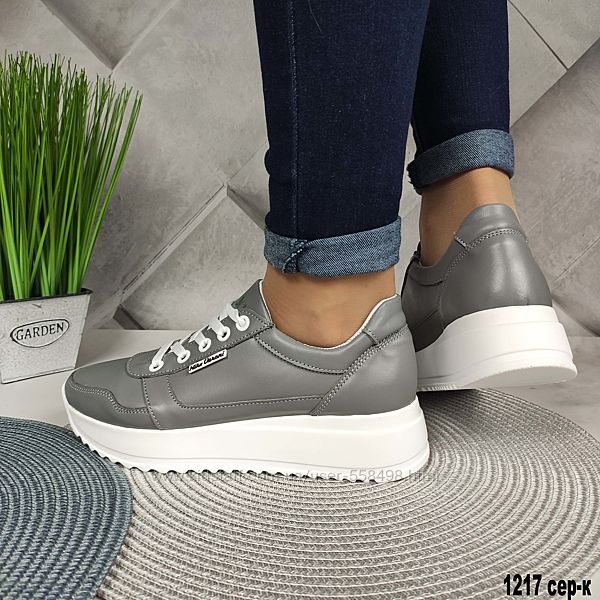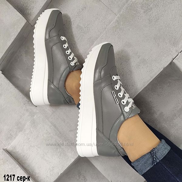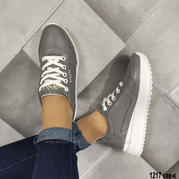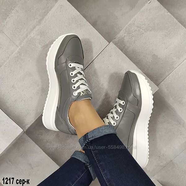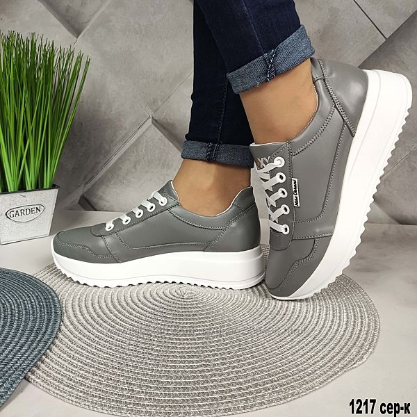 Подробное описание: Женские кожаные кроссовки серого цвета