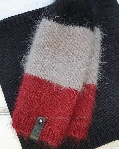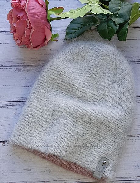 Женские шапки бини из мериносовой шерсти и пуха норки (ангора)Ручная работа