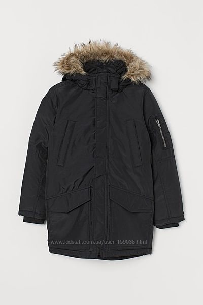 Зимова куртка парка від шведського бренду H&M.Утеплена парка з теплим капюшоном на хутровій підкладці з окантовкою зі штучного хутра. Капюшон відстьобується.
