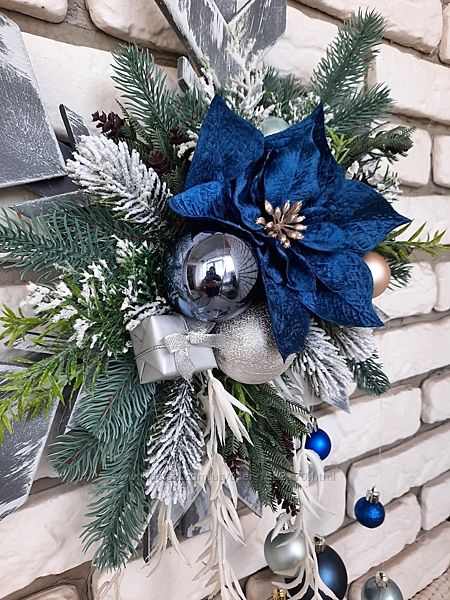 Сніжинка з синьою пуансетією /Подвеска Снежинка с синей пуансетией