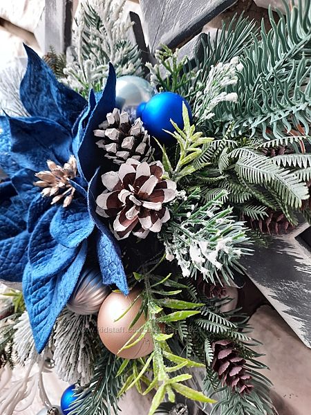 Подробное описание: Сніжинка з синьою пуансетією /Подвеска Снежинка с синей пуансетией
