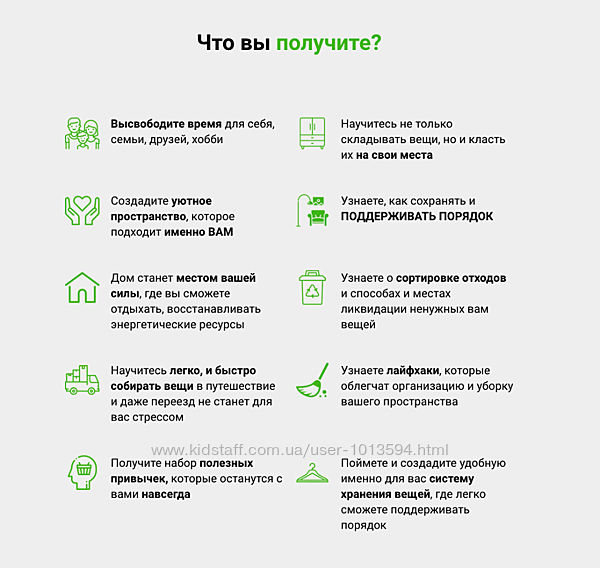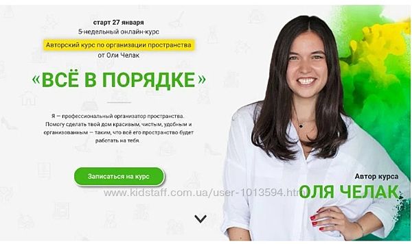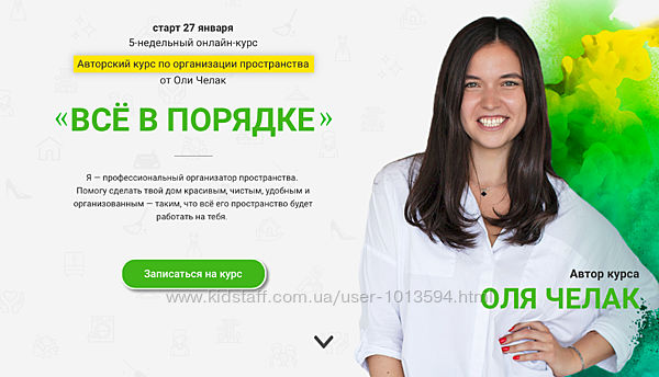 Автор курса Оля Челак - профессиональный организатор пространства.