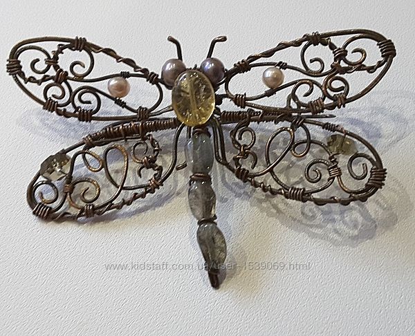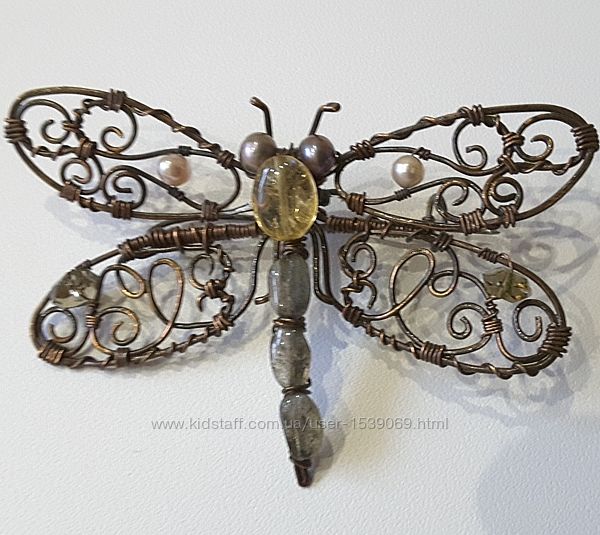Подробное описание: Брошь, стрекоза, натуральные камни, ручная работа