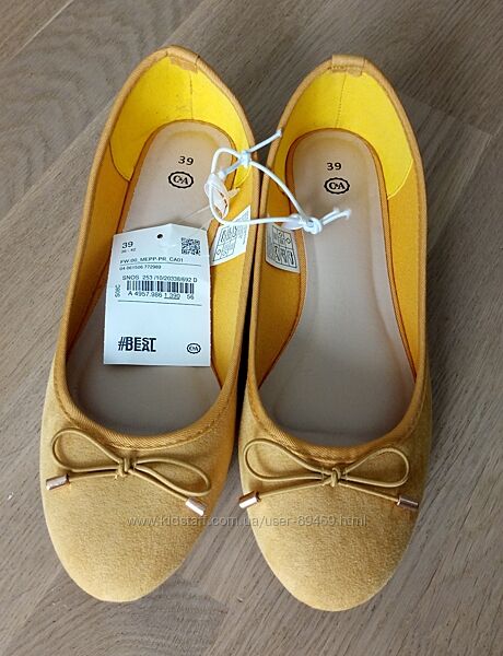 Балетки С&А, круглый носок, декоративный бантик, ребристая подошва и небольшой каблучок, р.39, длина стельки 25 см. Цена: 380 грн.