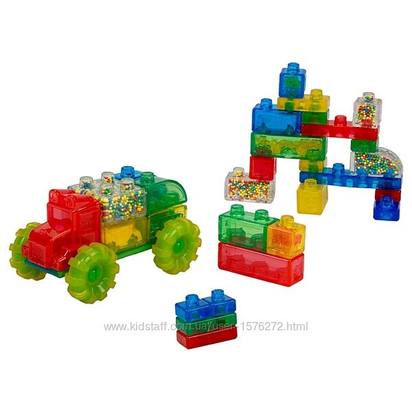 У кольорових і прозорих блоках є наповнення у вигляді зірочок, цеглинок, барвистих пінопластових кульок і кінетичного піску.