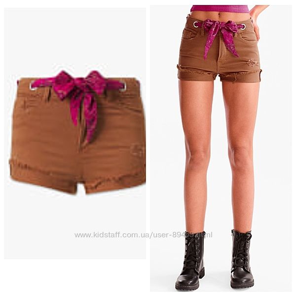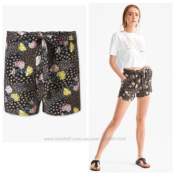 Шорты ТМ Clockhouse, эластичный собранный пояс на резинке с мягким поясом, завязывающимся в бант, р.42евр, состав: 98% хлопок, 2% эластан. Цена: 355 грн.