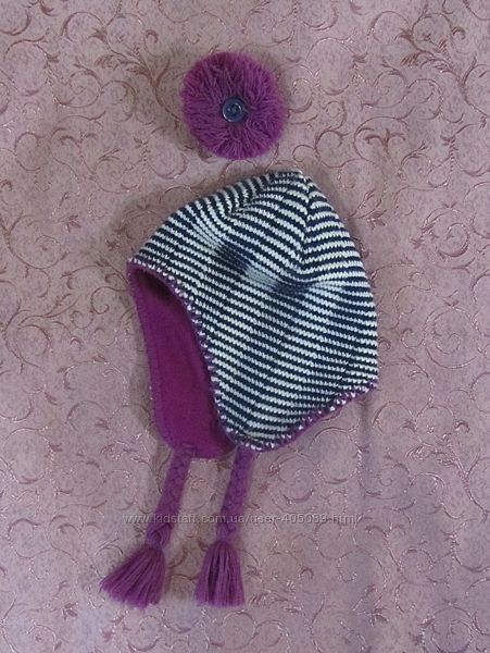 Шапка демисезонная на флисе. Размер 54-55. Помпон на пуговице, отстёгивается. От пуговицы до лба - 18 см. От пуговицы до затылка - 21 см. От пуговицы до завязок - 28 см. Пересылаю. Возврата нет.