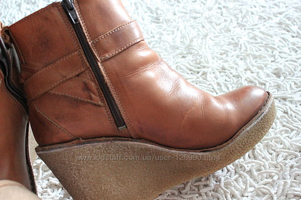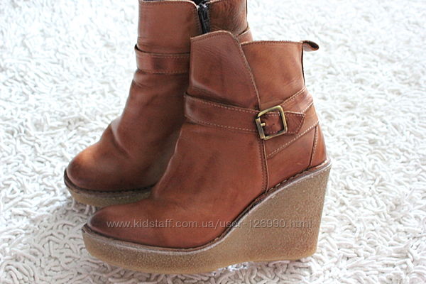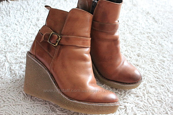 Рыжие кожаные ботинки на танкетке Buffalo размер 39 25,5 см по стельке, отличного качества, кожа внутри и снаружи, удобная танкетка, подойдут на широкую ножку. Высота танкетки 2,5 см, каблук 9,5 см, высота ботинка 12 см, обхват сверху 31 см (можно больше). Цена 450 грн.Возврат не предусмотрен.