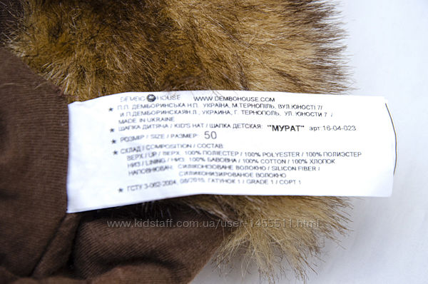 В составе материала нет опасных для здоровья добавок. Верхняя часть шапки изготовлена из плотного экологически чистого полиэстера, а подкладка пошита из приятного на ощупь, мягкого хлопкового волокна. В качестве наполнителя, который не пропускает холодный воздух и сохраняет тепло, производитель использовал специальное силиконизированное волокно. Головной убор напоминает шапку-ушанку, однако дизайнеры постарались придать ему современный вид и превратили в оригинальный аксессуар. Благодаря длинным «ушкам», которые соединяются при помощи надежных заклепок, ребенку будет комфортно в таком головном уборе даже в самые сильные морозы.