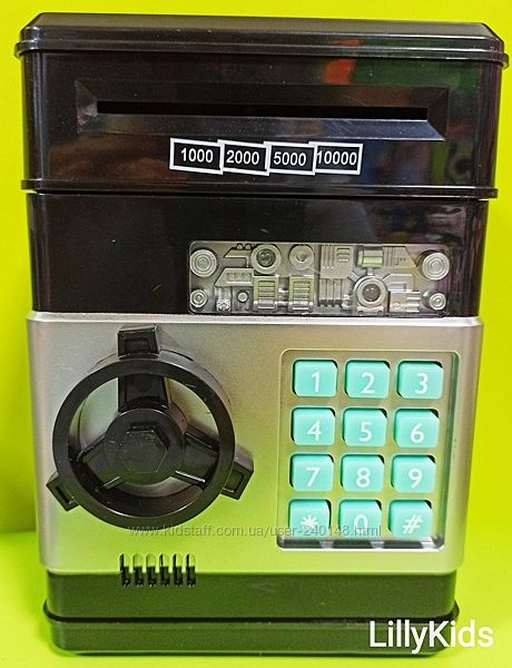 · Как и положено настоящему сейфу, эта копилка имеет кодовый замок.