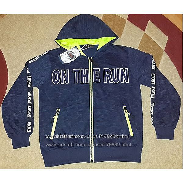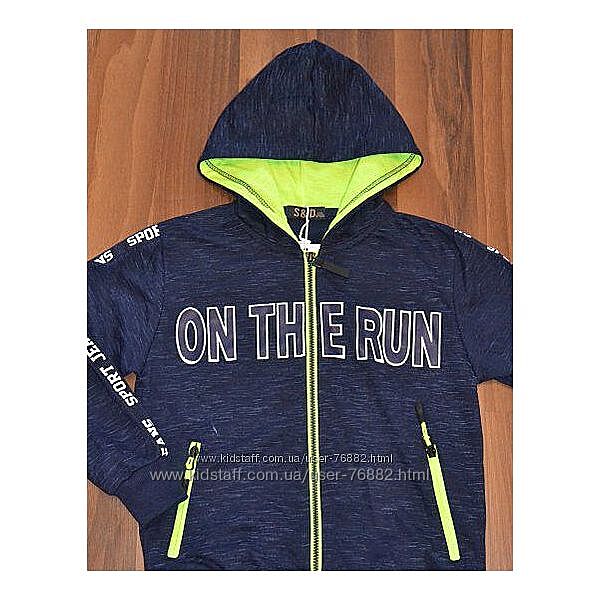 Спортивные трикотажные костюмы троечки для мальчиков. Кофточка на молнии с капюшоном, с красивым рисунком , брючки на манжете. Фирма S&D.Цвет синий.