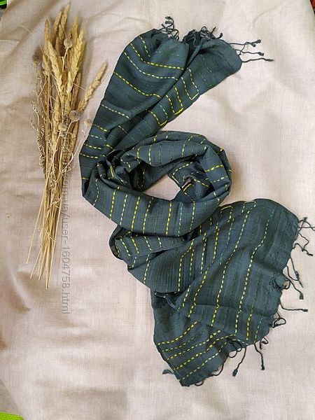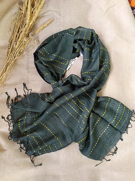 Широкий шарф палантин с мерёжками зелёный вискоза hello day .Ткань вискоза.