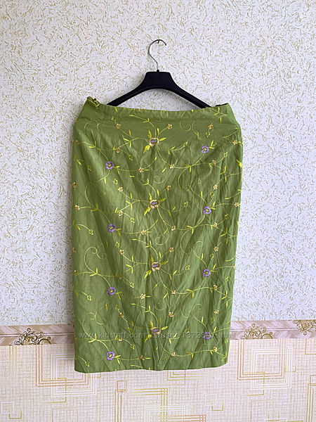 Красивая зеленая юбка карандаш с вышивкой hirsch ниже колена как шелковая
