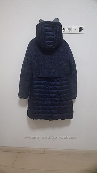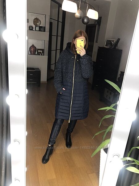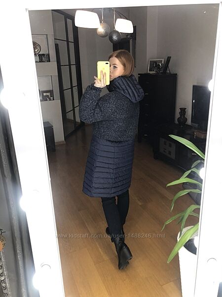 Подробное описание: Пальто-пуховик из комбинированной ткани синего цвета