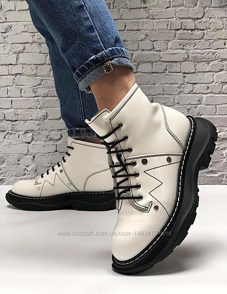 Зимние женские ботинки Alexander McQueen Boots. White. Натуральная кожа.
