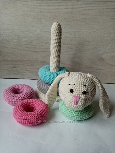 Піраміда для малечі. Зв´язані з напівкотонових ниток, наповнювач синтепон, очі на безпечному кріпленні. Висота 18см.Другие объявления продавца