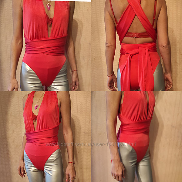 Шикарный неотразимый боди купальник ленты для фотосессии, в клуб или кому на что нужно, можно и на пляж. Цвет нежно розовый коралловый. Низ до пояса как на обычном купальнике, дальше вверх идут две ленты длиной около 2 метров. Шикарное декольте. Вариантов носки миллион , на фото только малая часть из них) вообщем огромный простор для фантазии. Мне нужен был на раз для фотосессии, супер эффектно сексуально неповторимо смотрится!!! Размер на фото, на 44-46. Супер красивый, супер эффектный!!! Пересылаю. Вопросы в личном сообщении. Смотрите также другие мои объявления. Есть много других купальников боди корсетов пеньюаров и других интересных вещей! Удачи всем!Доставка: Пересылаю Укр или Новой почтой оплата на карту Приватбанка, возврата нет.