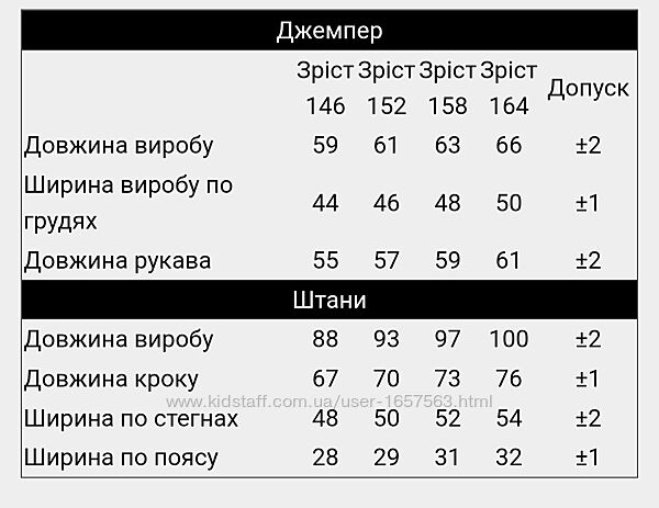| Рост | 158 см, 164 см, 170 см, 176 см |