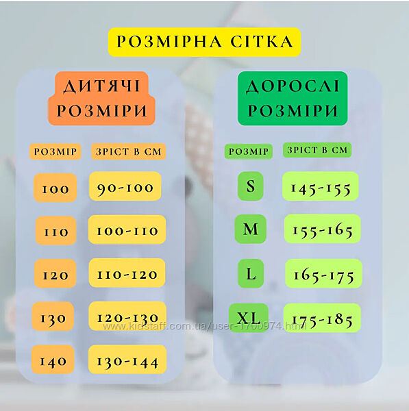 В наявносі всі розміри на зріст від 90-185 см