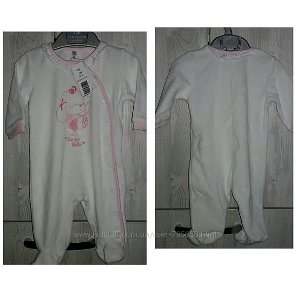 БЕЛЫЙ ВЕЛЮРОВЫЙ 0-3 МЕСЯЦА с розовой окантовкой и зайчиком. Воротник с рюшами.