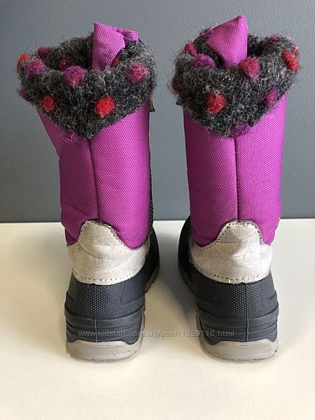 Чобітки в ідеальному стані, купили вже в кінці зими і вдягнули лише кілька разів. Не промокають, без нюансів. Гарно регулюються на нозі за рахунок шнурівок. Устілка не виймається, ну не реально виміряти. Ми носили коли був у нас 26-й розмір і ще був запас, тому йдуть розмір в розмір. Виробник Італія.Дивіться всі мої оголошення, економте на пересилці!