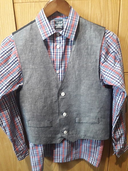 Чудова двійка для хлопчика 11-12-ть років. Сорочка жилет. Виробник - В´єтнам.Написано розмір 14, але сину зростом 165 см була малувата.