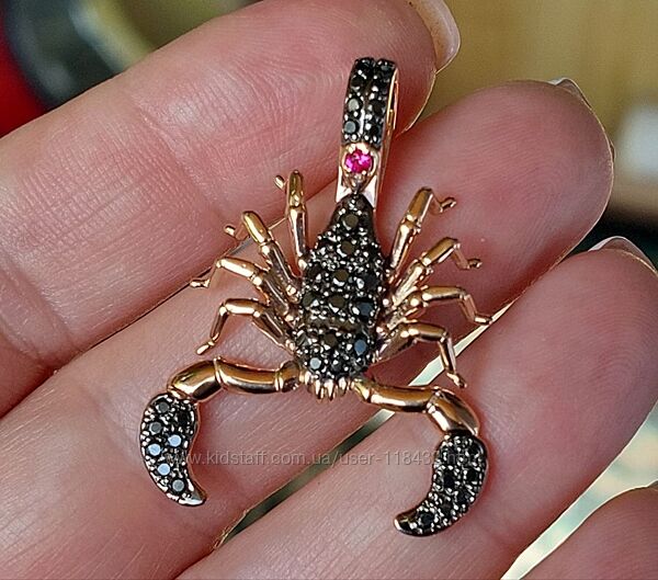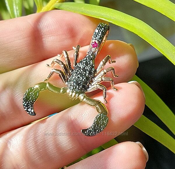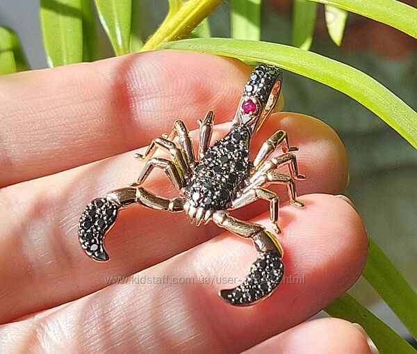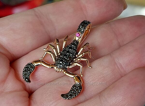 Подробное описание: Золотой кулон Скорпион с муассанитами