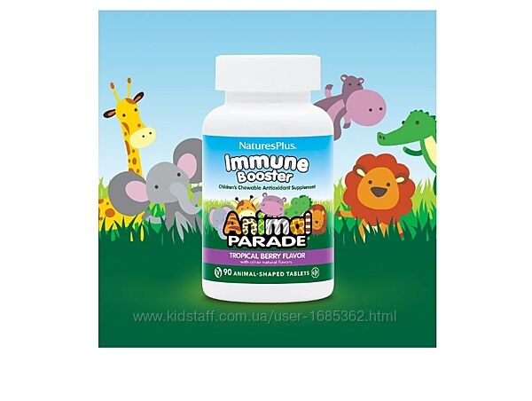 Подробное описание: Natures Plus, Animal Parade, Immune Booster, детские витамины, оригинал