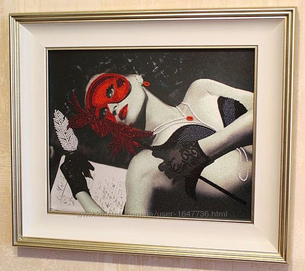 Вишита чеським бісером на атласі. Оформлена у багетній майстерні у рамку зі склом. Розмір картини із рамкою 42*37 см. Кількість кольорів – 7. Є кріплення для картин на стіну.