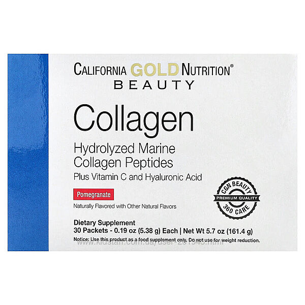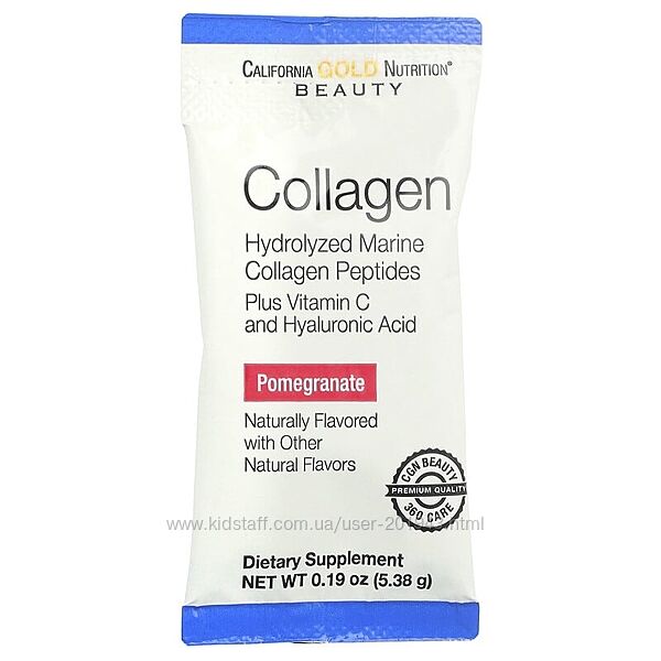 California Gold Nutrition , пептиди колагену з вітаміном C та гіалуроновою кислотою, зі смаком граната, 30 пакетиків по 5,38 гТермін придатності: 08.2028