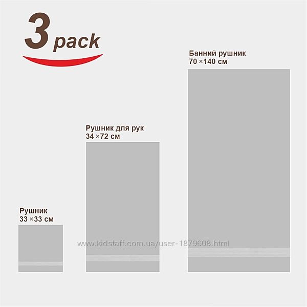 - Набор из 3 предметов: 1- банное полотенце 70*140 см, 1- полотенце для лица 35*75 см, 1-полотенце для рук 35*35 см.
