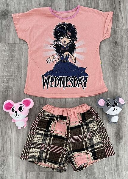 Дитяча піжама "Wednesday" футболка з коротким рукавом і шорти.ТКАНИНА: кулір36)122-128 футболка Д 46см, Шир 37см. шорти довжина 25см