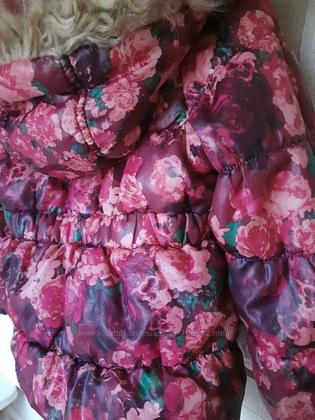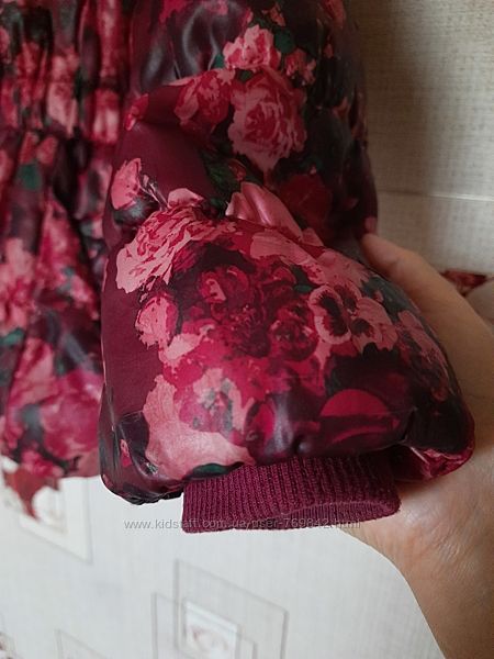 Фирменная курточка на 2-4 года, покупалась в Польше, внутри флисовая подкладка. Идет как еврозима, мы носили и в холодную зиму под теплый свитерок.Длина 47 см., плечики 29 см., талия где резиночка 28 см. и растягивается до 36 см., рукава 40 см., мы их подворачивали внутрь, когда были длинными.