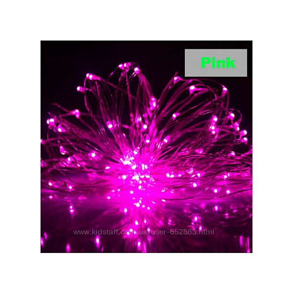 Гирлянда светодиодная Капля Росы нить 100 LED 10м от батареек+ USB розоваяГирлянда "Роса" носит свое название, так как сделана из маленьких светодиодов расположенных на