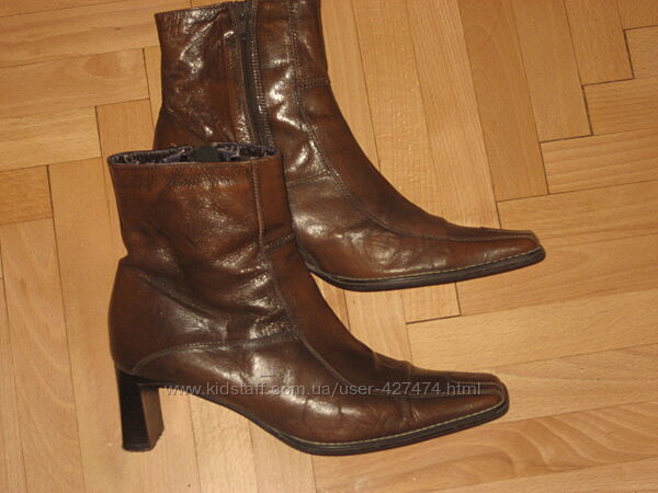 Фірмові чобітки Cliffton лакована шкіра темно-коричневі. Підійдуть як на холодну осінь так і на теплу зиму. Всередині типу тонкої фланелі. Вказано р.39-повністю відповідає. Стійкий невисокий каблук висотою 6см. Набойки ще заводські.Зверху стан ідеальний, тільки всередині зверху почала лущитись полосочка з замінника, але це всередині, тому на зовнішній вигляд та функціональність зовсім не впливає.