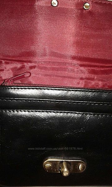 Очень красивый женский кошелечек. Цвет черный. Размер 14Х10 см. Подкладка бордового цвета. Внутри три отделения, одно из них на молнии для мелочи, и карманчики для карточек. Состояние идеальное, недостатков нет.Другие объявления продавца